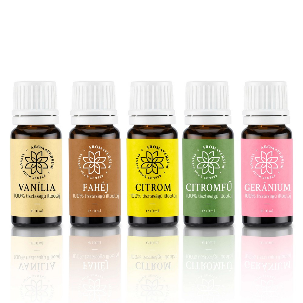Az 5 Darabos 100% Tisztaságú Illóolaj csomag Húsvétra a következő illóolajokat tartalmazza: Borsmenta, Citrom, Édesnarancs, Eukaliptusz, Rozmaring.