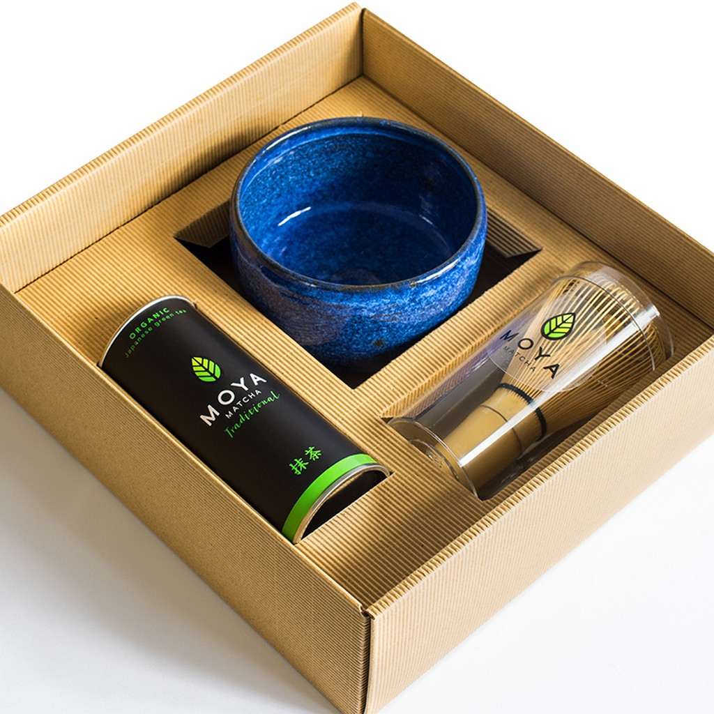 - Minden egyben a kezdéshez: kapsz egy 30 g-os Moya Matcha Traditional teát, egy kézműves kerámia matcha tálat (matchawan) és egy bambusz teakeverő ecsetet (chasen).