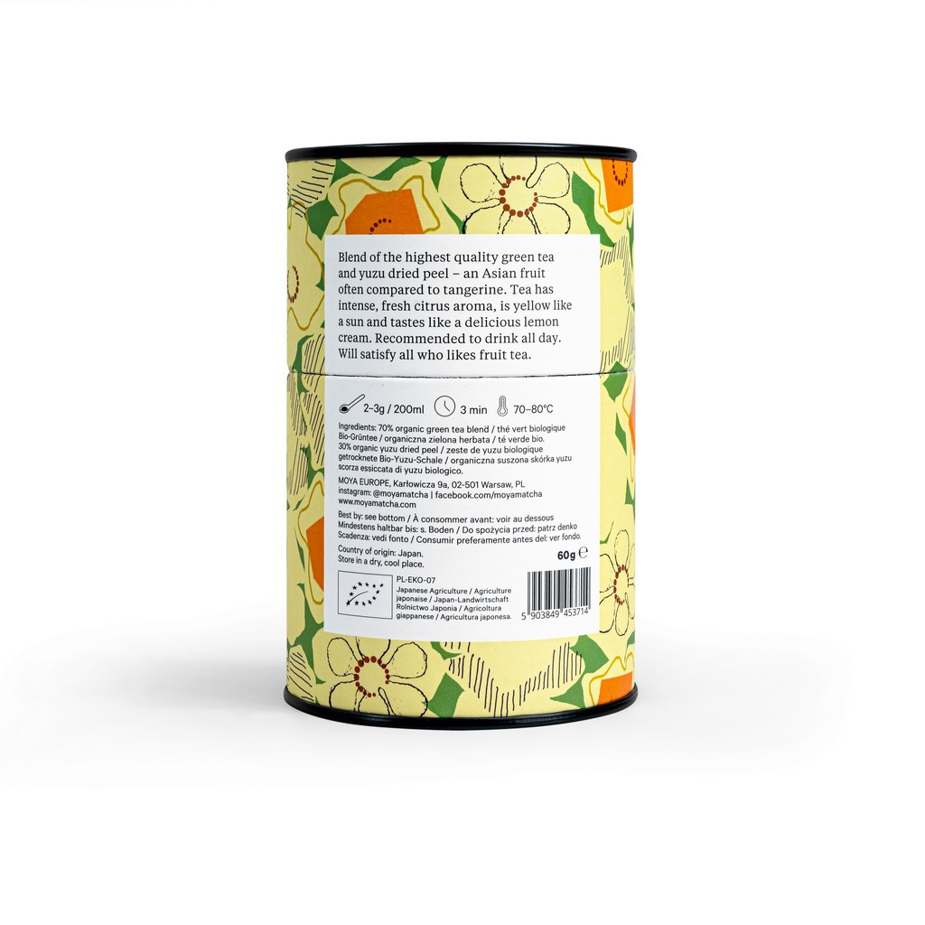 A Moya Matcha Yuzu Organikus Japán Zöld Tea Japánból származó organikus sencha zöld teából és gondosan szárított yuzu gyümölcshéjból készül. A sencha leveleket válogatják, gőzölik, formára sodorják, majd szárítják, hogy megőrizzék friss, zöld karakterüket.
